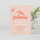 Retro Modern Groovy Script Mjuk Orange Bröllop Inbjudningar