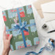 Backa dina presenter med festive helgdag papper med en liten bit retro-charm! Denna moderna papper julomslutning erbjuder en mörk grönt bakgrund som accentueras av stjärnor, snöflingor och vintage-inspirerad typografi.