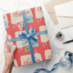 Backa dina presenter med festive helgdag papper med en liten bit retro-charm! Denna moderna papper julomslutning erbjuder en röd bakgrund som accentueras av stjärnor, snöflingor och vintage-inspirerad typografi.