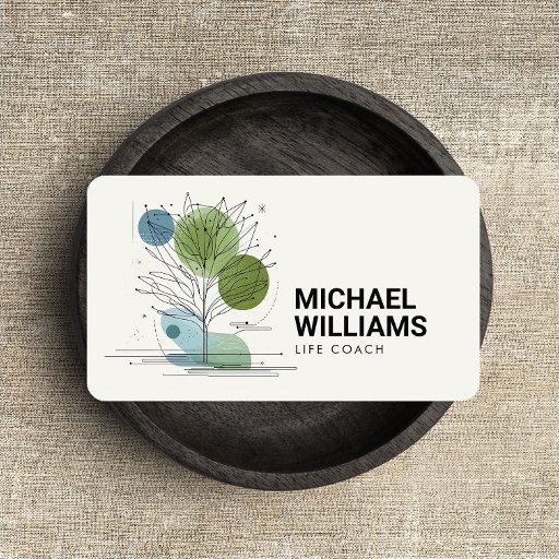 Retro Modern Minimalist Träd Life coach Blue/Grönt Visitkort