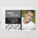Denna retro cirkel design gör ett iögonfallande tillkännagivande av din sons examen. Mångsidig formatering tillåter detta 5x7 fotokort att användas som en festinbjudan (som visas) eller anpassa texten på baksidan för att förvandla den till endast ett tillkännagivande. Lika perfekt för gymnasiet eller högskolan och finns i en mängd olika färger.