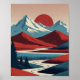 Retro Mountain liggande Illustration Red Blue Poster