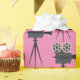Perfekten som figurerar pappert för film/film älskare! Retro stil tripod-filmkameran mönster på rosans bakgrund.