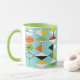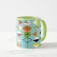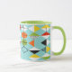 Denna Retro mugg för Harlequinmönsterringeren är modern stil för mitt- århundrade på dess mest fin. Den vintage inspirerade designen presenterar en aquabakgrund med ror av triangulärt formar att bilda ett harlequinmönster. Dentonade diamanten formar är gul, vit, rött som är orange, svärtar, görar grön, och vit med svart brytningar. Men väntan, där är mer! Det finns också orange ovaler, grön ovaler med svart starbursts och skisserar av svart diamanter. Time marscherar på, men du ska känselförnimmelsenågot liknande som du har funnit en kitschy tryckvåg från förflutnan med denna färgrika geometriska skatt.