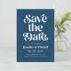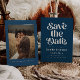 Retro och elegant sparar datumkortet med boho-typsnitt som säger "spara datumet" i marinblått färg. Du kan lägga till ett foto på baksidan.
