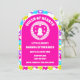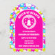 Retro Neon Queen of Hearts Barns födelsedag Party Arch-inbjudan med en vintage Alice i underlandsindikerad design med spelkort, rosa- och reflexmotiv och en charmerande retro-estetik. Perfekt för ett Mad Hatter-te-party, underlandstäckande födelsedag eller firande, denna unika konstgjorda båginbjudan tillför en magisk och snyggt beröring till att bjuda in gäster till det speciella evenemanget.