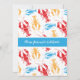 Rolig vintage retro stil hummer bakmönster med röda, blå och gyllene humrar eller signal kräftor.