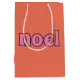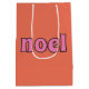 Slå ihop julklappar i stil med den här presentpåsen. Det innehåller meddelandet "noel" i rosa i Retur stil mot bakgrund av orangen.