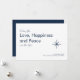 Klassiskt nyårskort 2026, med marin blå typografi på vit bakgrund. Med anpassadets text kan du lägga till din egen familj namn. En blå snöflingbild accentuerar kortets framsida och med en blå bakgrund på baksidan. Ett enkelt sätt att skicka er önskemål av kärlek och fred under det nya året.