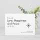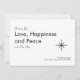 Klassiskt nyårskort 2026 med svart typografi på vit bakgrund. Med anpassadets text kan du lägga till din egen familj namn. En grått-snöflingbild accentuerar kortets framsida och med en grått-bakgrund på baksidan. Ett enkelt sätt att skicka er önskemål av kärlek och fred under det nya året.