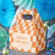 These personalized favor boxes feature a playful retro checker pattern in warm orange with a soft peach center panel for names and event details. Designed to feel fun yet polished, they’re perfect for packaging baby shower favors, sweets, small gifts, or take-home treats. The folded box style makes setup easy while adding a bold pop of color to dessert tables and party displays. Customize the name and date to coordinate seamlessly with matching baby shower decor and party stationery.
