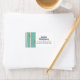 Adressetiketter med illustration av träd som föder upp orange fåglar sitta på deras grenar. Bakgrund till färgaden för Retro-grönt.