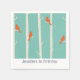 Personligens födelsedag pappra blöjor med en illustration av björk träd med orange fåglar sitta på deras grenar. Bakgrund till färgaden för Retro-grönt.