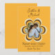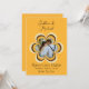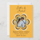 Denna anpassade Spara Datum för bröllopsannonseringen har ett retrotema inspirerat av 1970-talet. Bakgrunden är orange med brun text och parets namn skrivna i en elegant skrivstil. En brun och gul 70-talsinspirerad blomma är tryckt i mitten. Ett exempel på ett foto är placerat inuti blomman som kan anpassas med ditt eget foto eller annan bild.