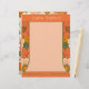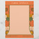 Gör ett fet påstående med 70:s inspirerade, anpassningsbara brevhuvud papper med ditt namn och dina detaljer i ett känsligt, tunt teckensnitt med vintage på en ljus orange bakgrund med illustration av orangens blommigt. Skrivutrymmet för denna färgstarka papper är en underbar, lustig persika.