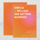 This save the date announces your wedding with a bold summer sunset gradient in orange and pink. The warm, glowing color blend captures the feeling of golden hour celebrations and joyful evening gatherings. Designed for modern couples planning a vibrant summer ceremony, it sets the tone for a stylish and confident wedding day. It’s a bright and memorable way to share your date and build excitement with guests.