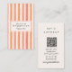 Retro Orange Pink Hand Drawn Stripes Girly QR Code Visitkort
