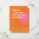 Detta datum för bröllop annonserar ert bröllop med en djärv sommarsolnedgångsgradient i orange och rosa. Den varma, glödande färgblandningen fångar känslan av gyllene timmars firande och glada kvällssamkväm. Designat för moderna par som planerar en livlig sommarceremoni, sätter det tonen för en stilfull och självsäker bröllopsdag. Det är ett ljust och minnesvärt sätt att dela ert datum och bygga upp förväntan hos gästerna.