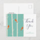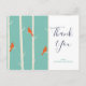 Ett tack-kort med en illustration av björkträd med orangefåglar som sitter på sina grenar. Retrogrön bakgrund.