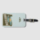 Snyggtens bagagetagg har återkonstnärlig Oregon-statsilhuett med text på ljusblå bakgrund. Anpassa överst med monogram eller namn