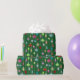 Retro Ornaments Grönt julomslag pappra med flera handmålade vintagar i färg alla på grönten stjärnsprängningar och atombakgrunden i mönster. En toppen roligt som kan dekorera din gåva under detta år Julgran. Du kan göra mönster på inslagningen papper mindre eller större.