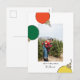 Ett modernt kort för helgdag med tre stil-dekorationer i rött, grönt och gult som omger ett personlig-foto ovanför en anpassningsbar säsong hälsning och namnteckning. Design av Shelby Allison och Joseph Gonzalez foto på Unsplash