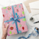 Retro Ornaments Rosa julomslag pappra med flera handmålade vintagar i färg alla på rosa stjärnsprängningar och atombakgrunden i mönster. En toppen roligt som kan dekorera din gåva under detta år Julgran. Du kan göra mönster på inslagningen papper mindre eller större.