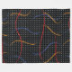Retro 1980:s primära färg-färgstreck stänger mönster på en geometrisk svart och vit prickad bakgrund.
