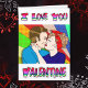 Grattis Alla hjärtans dag. Söta handritade retro nostalgiska 1950-talets par kysser pop art.