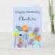 Retro stil födelsedagskort, teckning-blommor på pastellbakgrund med cirklar i pastellform färg.