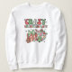 Den här vita sötskjortan fångar julens festliga anda med ett streck av retro charm. I mitten av designen hittar du en trio av pastellbilder med färgad: en klassisk dekoration och ett fräckt Julklapp. Den här charmerande grafiken är märkt "Crazy jul Dam" i ett lekfullt återbubblande typsnitt. Texten är viskartad och öga-infångande, vilket tillför humor och personlighet till tröjan. Det firar på ett lekfullt sätt någons orubbliga entusiasm för hela julen i sak. På det hela taget är den här sötskjortan en underbar blandning av festive färg och retroestetik, och skapar den perfekt plagg för alla som kärlek för att njuta julhelgens glädje och glädje med en liten aning stollig. Det är en roligt och en snyggt att visa din julanda.