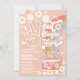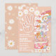 Celebrate your childs milestone with this retro 1970s-inspired birthday party invitation featuring a groovy peach background, daisies, butterflies, rainbows, and a peace sign hand. A pink hippie van adds a fun nostalgic touch, perfect for kids who love peace, love, and good vibes. This customizable invitation is ideal for 10th birthdays or any milestone celebration, blending vintage charm with playful design to make your party unforgettable.