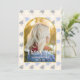 Retro graduation with grad caps in shades of blue and gray with white flowers against a light peach background. Colors can be customized to your choosing. Photo template via Pixabay licensed under CC0 and must be replaced with your own photo.