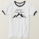 Roligt personlig ringer t-shirt för din Camp Bach i bergen. Ett klassiskt sommarläger stil! Retroplåt i svart. Anpassa bakteriebordets namn ovanpå och platsen vid bergen. Svartvit och bergsaccent färg. Färg kan anpassas i Design Verktyg.