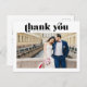 Bröllop Tack vykort för enkel återdesign och elegant. Ord har ett "tack"-teckensnitt som är utmärkt över kortets överkant. Klassisk svartvit version, ändra färg i texten eller lämnan efter behov. Anpassa med ditt eget foto från bröllop och lägg till ditt meddelande för att skapa ett tackkort som dina gäster kommer att passa. Bläddra i Bröllop tackkortssviten för ett urval av andra utformningar.