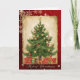 Retro Pine Tree Presents Snowflakes Red Helgkort