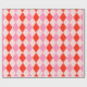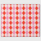 A bright, modern retro hand drawn diamond patterned holiday wrapping paper in shades of pink and red.