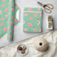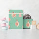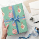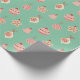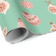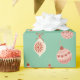 A pattern of vintage pink Christmas ornaments on a retro sea foam green background.