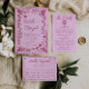 Retro Pink Raspberry Drawn Floral Garden Wedding Inbjudningar