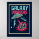 Retro Pixel Art Neon Pink and Teal Galaxy Invaders Poster