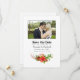 Lägg märke till att det kommande bröllop med den här charmerande återinspirerade minneskortet sparar datumkortet, med en fin cykel basket fylld med julstjärnor och gräs. Perfekt för ett helgdag- eller jultemat bröllop, kombinerar den här designen vintage med säsong skönhet. Anpassa den med ditt favoritfoto för att skapa en unik och minnesvärd keepé som fångar magin i firande under vintern. Det finns en QR-kod på motsatt sida för att skicka gäster till er plats i bröllop.