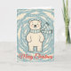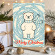 An adorable retro polar bear stands in a swirling snowy blizzard in this charming mid-century holiday design. Soft pastel tones and vintage textures create a warm, nostalgic feel, perfect for sending cozy Christmas greetings.