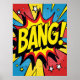 Denna poster är en kod för den kaotiska, explosiva energin hos en klassisk tecknad bok climax. Det är en visuell händelse med många-grafikeffekter - från den taggiga röda stjärnan och överlappande vita stjärnor till det dynamiska rörelse-linjerna - som alla arbetar tillsammans för att fånga upp ett enda, kraftfullt islagsmoment. I biet firas roligten, den kinetiska konsten av den klassiska tecknaden bok storytell och är den mest dynamiska av "BANG!"-designen. Det är speciellt eftersom dess högeffektsdesign och kaotiska inslag på ett perfekt sätt fångar råenergin i en bok-skådeplats i tecknad och skapar det som en underbar hyllning till vintagens tecknaders visuella språk. Denna tillitsfulla och livliga biet i konsten är ett djärvt påstående, en perfekt för att ge upphetsning till alla platser.