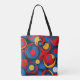 Gå djärvt med dessa vibrerande och energiska cirklar mönster. Den här teckningen är inspirerad av 60-talets popup-teckning och mod och har en lekfull explosion av överlappande cirklar och ringar i en klassisk palett med rött, blått och gult. Det är en roligt, öga-fångst och oangenämt glad design som är fullt av tidlös stil.