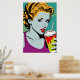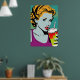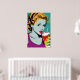 Det här har en lekfull, återinspirerad design som kombinerar inslag av popkonst och middag i vintage. Den centrala bilden består av en leende flicka som håller en lång, grå mjölkskaka, omgiven av fet, färglös grafik. Den övergripande effekten är roligt och du måste lägga till en liten bit stollig i vilket utrymme som helst.