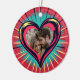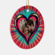 Personlig Valentindagen prydnad med ett retro popart rött, blått och gult hjärta. Det här kortet kan vara till honom eller henne. Hjärtat är i en gotisk tatuering stil på baksidan. Du kan lägga till ditt favoritfoto och din namn i personaliseringsområdet.