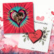 Personlig Alla hjärtans dagskort med ett retro pop art rött, blått och gult hjärta. Det här kortet kan vara till honom eller henne. Hjärtat är i en gotisk tatuering stil på baksidan. Du kan lägga till ditt favoritfoto och din namn i personaliseringsområdet.
