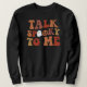 Den här tröjan har ett återfall i färgaden med ord, "prat på mig" och söta spöke och pumpor. Halloween-uttaget gör det till perfektens höstutrustning.
