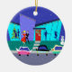 Prydnaden för dessa för helgdagtecknaden för anpassadet satte den ska Retro jul för partyet dig i helgdaganden. Designen presenterar det yttre av ett modernt hus för mitt- århundrade. Till och med golv till takturkosglasväggar kan vi se de marinblåa silhouettesna av festliga partygoers. Det finns en koppla ihop som framme pratar av en grön julgran, som dekoreras med krickaprydnadar. På motsatssidan av rummet kan vi se att en dansman och den uthålliga manen alla är prövas att undvika. Det yttre av huset presenterar en cheery röd dörr med en helgdagkran, purpurfärgad en tegelstenspis i storformat och strandar av färgrikt julljus. En grå färgwalkway är bita en stråk till ytterdörren, till och med krickagräset. Nattplatsen har en mörk - blå himmel med en gult, växande måne. Den plast- snögubben som dekorerar beklädagården, greeteds av de första snökastbyarna av säsongen. Ett attraktivt kopplar ihop gör chaen-cha-cha på långt till deras bil. Den blonda kvinnan ha på sig en ljus röd klänning. Hon är hållande en sprig av mistletoen i en räcker. Hon den stiliga eskorten ha på sig en svart kostym och en röd tie. Hans händer slås in runt om kvinna midja. På gatan som är främre av huset, kan vi se tre, ljust färgade klassikerbilar. Motsatssidan av prydnaden presenterar en turkosbakgrund och överflöd av rum för att personifiera. Beställa i dag och partynågot liknande som den är 1959!