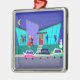 Denna ska Retro prydnad för jul för helgdagtecknadpartyet satte dig i helgdaganden. Designen presenterar det yttre av ett modernt hus för mitt- århundrade. Till och med golv till takturkosglasväggar kan vi se de marinblåa silhouettesna av festliga partygoers. Det finns en koppla ihop som framme pratar av en grön julgran, som dekoreras med krickaprydnadar. På motsatssidan av rummet kan vi se att en dansman och den uthålliga manen alla är prövas att undvika. Det yttre av huset presenterar en cheery röd dörr med en helgdagkran, purpurfärgad en tegelstenspis i storformat och strandar av färgrikt julljus. En grå färgwalkway är bita en stråk till ytterdörren, till och med krickagräset. Nattplatsen har en mörk - blå himmel med en gult, växande måne. Den plast- snögubben som dekorerar beklädagården, greeteds av de första snökastbyarna av säsongen. Ett attraktivt kopplar ihop gör chaen-cha-cha på långt till deras bil. Den blonda kvinnan ha på sig en ljus röd klänning. Hon är hållande en sprig av mistletoen i en räcker. Hon den stiliga eskorten ha på sig en svart kostym och en röd tie. Hans händer slås in runt om kvinna midja. På gatan som är främre av huset, kan vi se tre, ljust färgade klassikerbilar. Beställa i dag och partynågot liknande som den är 1959!